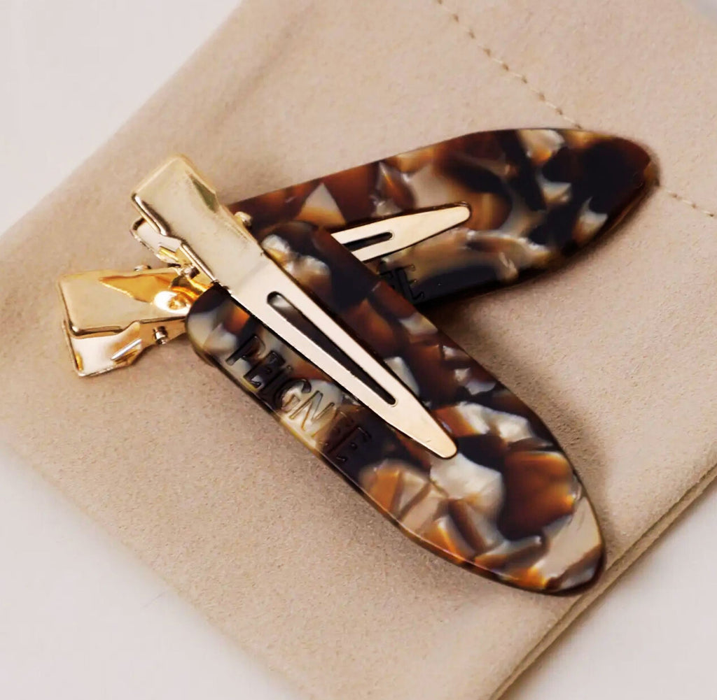 Frame your face with effortless elegance using our signature Espresso Flat Clips. Designed to elevate any look with understated sophistication, whether you're prepping for makeup application or adding a polished finishing touch to your style, these versatile clips deliver both function and fashion. A must-have for anyone seeking to refine their everyday aesthetic. Material: Cellulose acetate