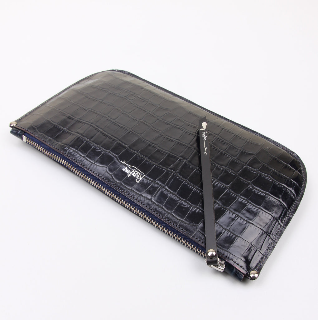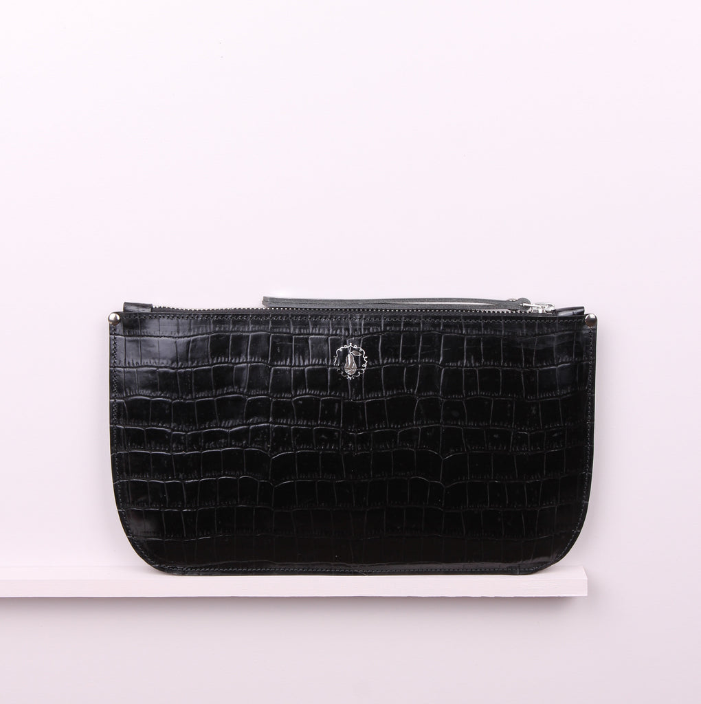 Unlined Clutch Bag - Italian Hi Shine Black 'Croc' Embossed Leather