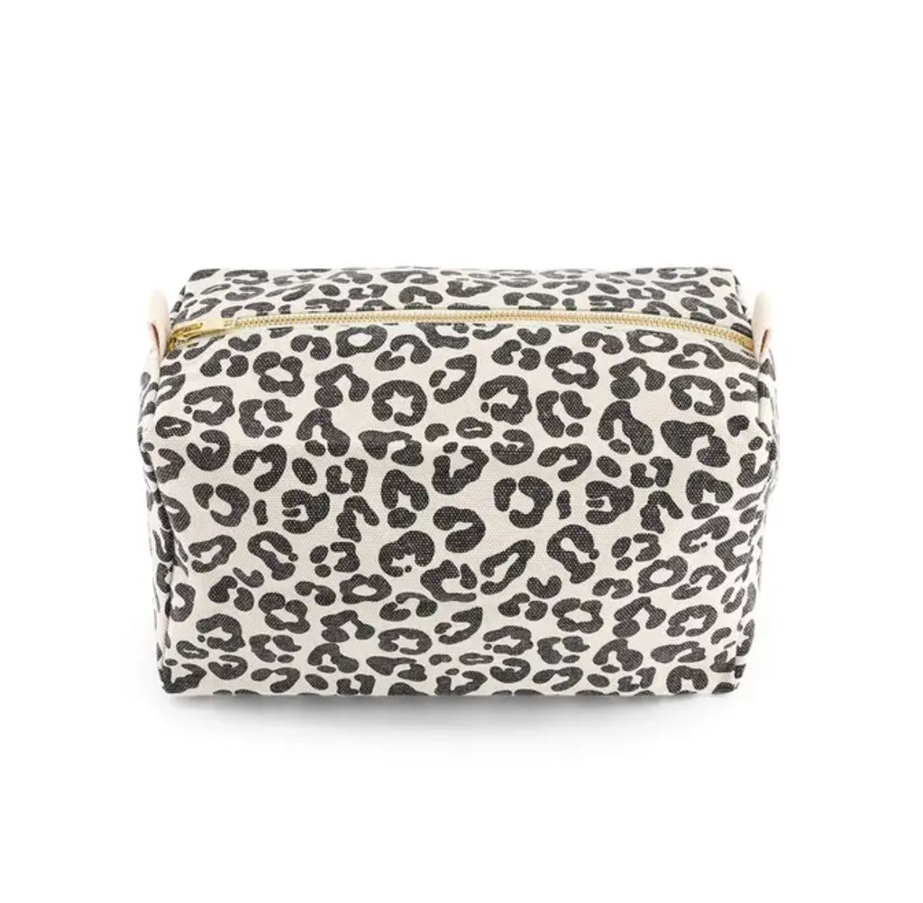 A large sized cosmetic pouch, lined with a sweet dotty fabric.