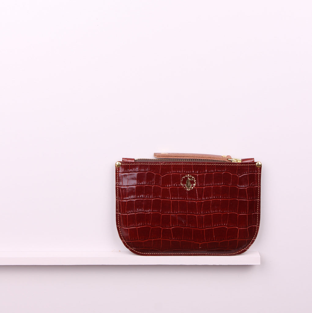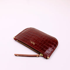 Unlined Coin & Card Purse - Italian Hi Gloss Hazel Brown 'Croc' Embossed Leather