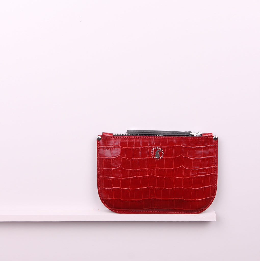 Italian Hi Gloss Post Box Red 'Croc' Embossed Leather