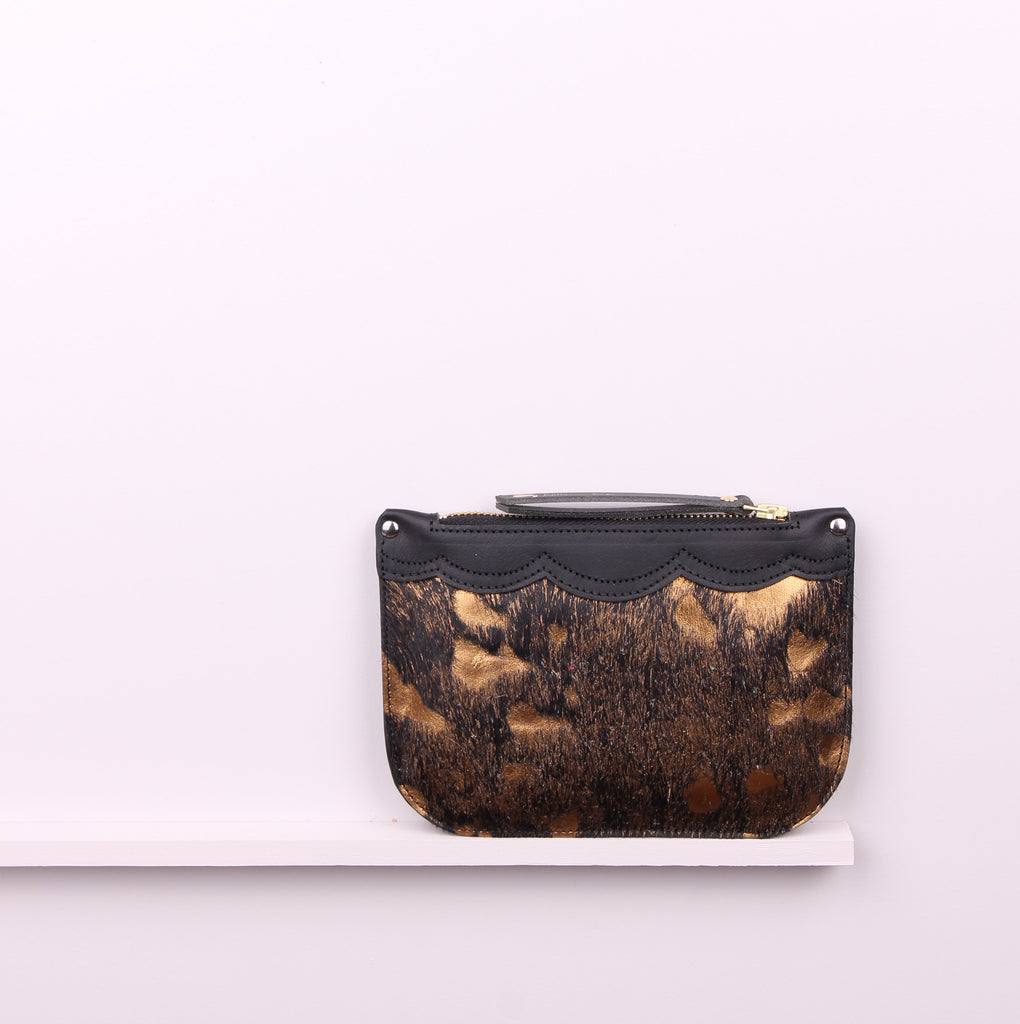 Unlined Coin & Card Purse - Italian Hair On Hide Leather with Bronze Metallic Flecks