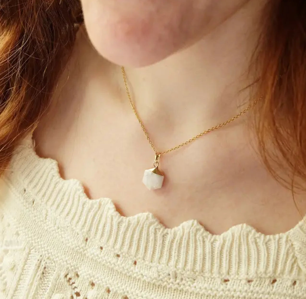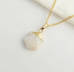 Designed and made in the UK, A stunning yet dainty natural Moonstone hexagon.