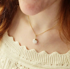 Materials 24K Gold plated stainless steel chain and natural Moonstone gemstone.