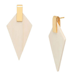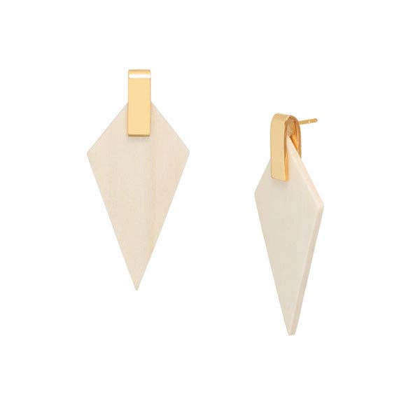 These lovely white wood and gold plate triangular drop earrings are a super versatile earring and will look great with a casual day look or on a night out for a more dressed-up style.