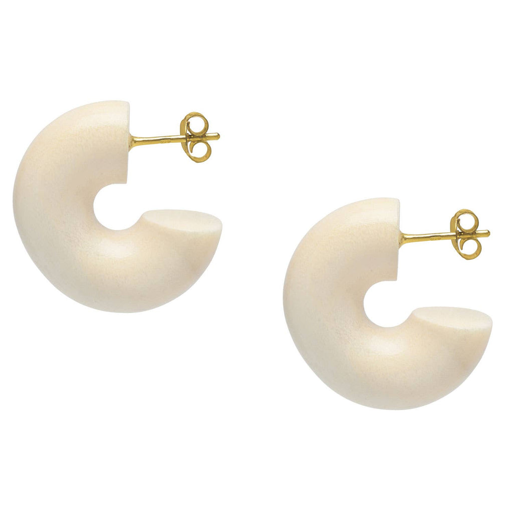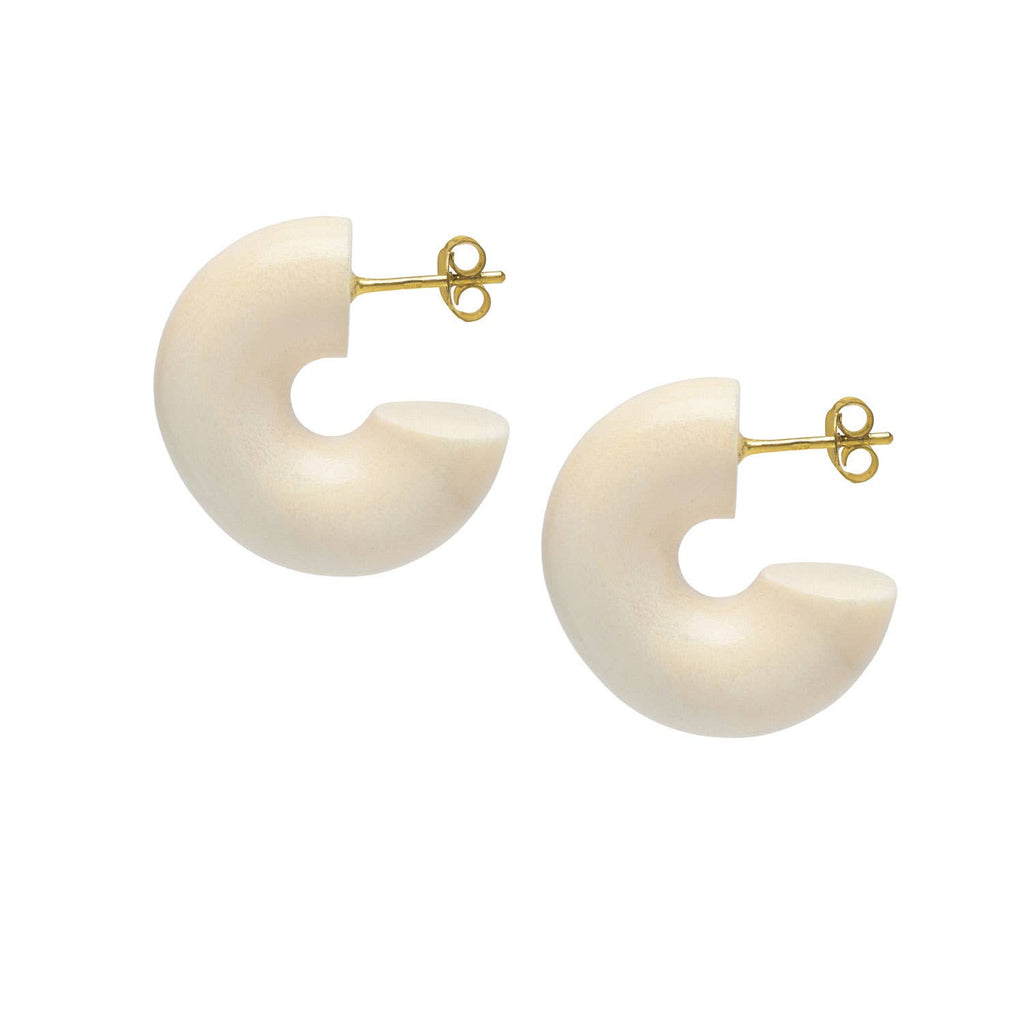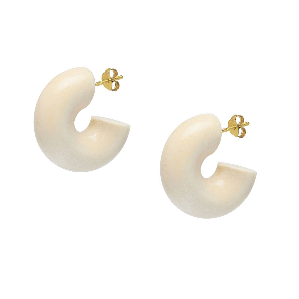 100% hand-made from ethically sourced high-quality wood and set with a gold plated silver post these rounded white wood statement hoop earrings not only look great, but are also ethically produced from natural materials.