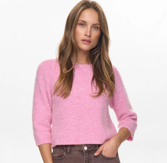 The Nuriette Selma Rib Pullover showcases contemporary design in a delicate lilac pink hue. This relaxed boxy silhouette features three-quarter length sleeves that offer modern proportions, whilst an intricate scallop detail frames the neckline with understated sophistication. Crafted from sumptuous soft ribbed fabric, this pullover delivers exceptional comfort without compromising on style. The structured yet forgiving fit makes it ideal for layering or wearing standalone, seamlessly transitioning from casual daywear to elevated evening looks. A versatile essential that combines tactile luxury with effortless elegance, perfect for those who appreciate refined minimalism.