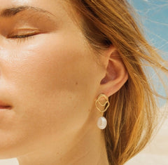 Célaphine – a name that evokes the enchanting lull of the sea, whispered from the ancient lips of the Aquazuran people as they crafted these earrings, a symphony of nacre and shimmering gold. The name itself is a tribute to their moonlit deity, Selá, a goddess of the night, as she casts her tender light like pearls upon the restless sea.