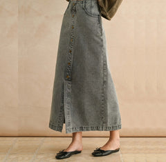 Crafted from 100% cotton, the Ash Skirt features a mid-length silhouette in ash grey washed denim. Its button-front design combines classic detailing with contemporary style, offering both comfort and durability. This versatile piece is ideal for elevating everyday wear with a refined, expert edge.