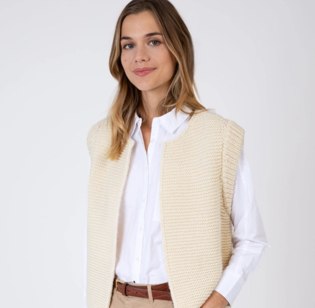 This Creama Gilet is a cream knitted short gilet, crafted in one size for versatile wear. Designed in France, it combines refined style with cozy texture, making it a sophisticated layering piece ideal for enhancing your outfit’s depth and warmth.